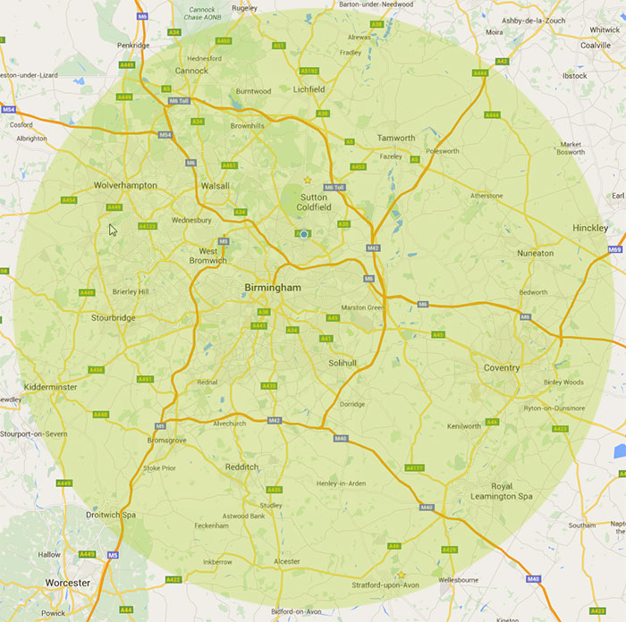 The map is used for illustration purposes and we are not restricted to this region. Please enquire for more information, we will endeavour to reach you no matter where you are.